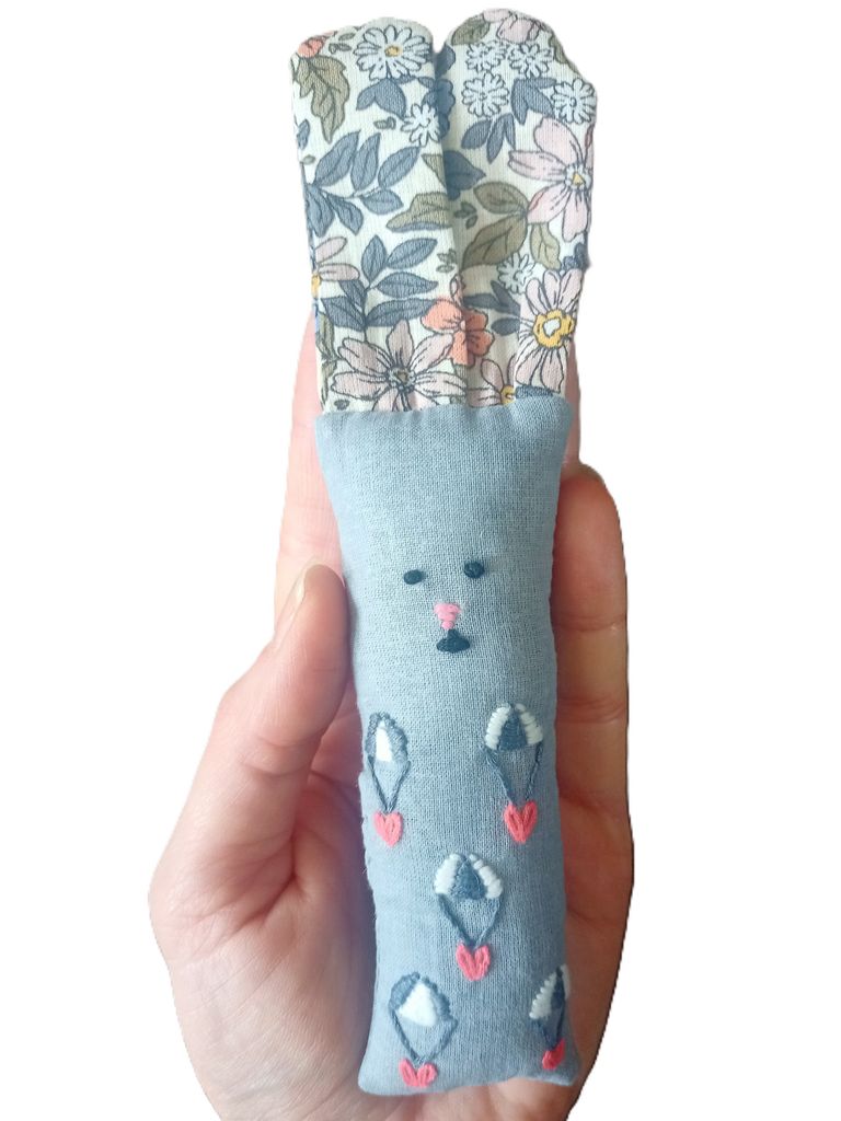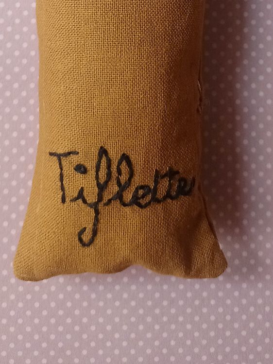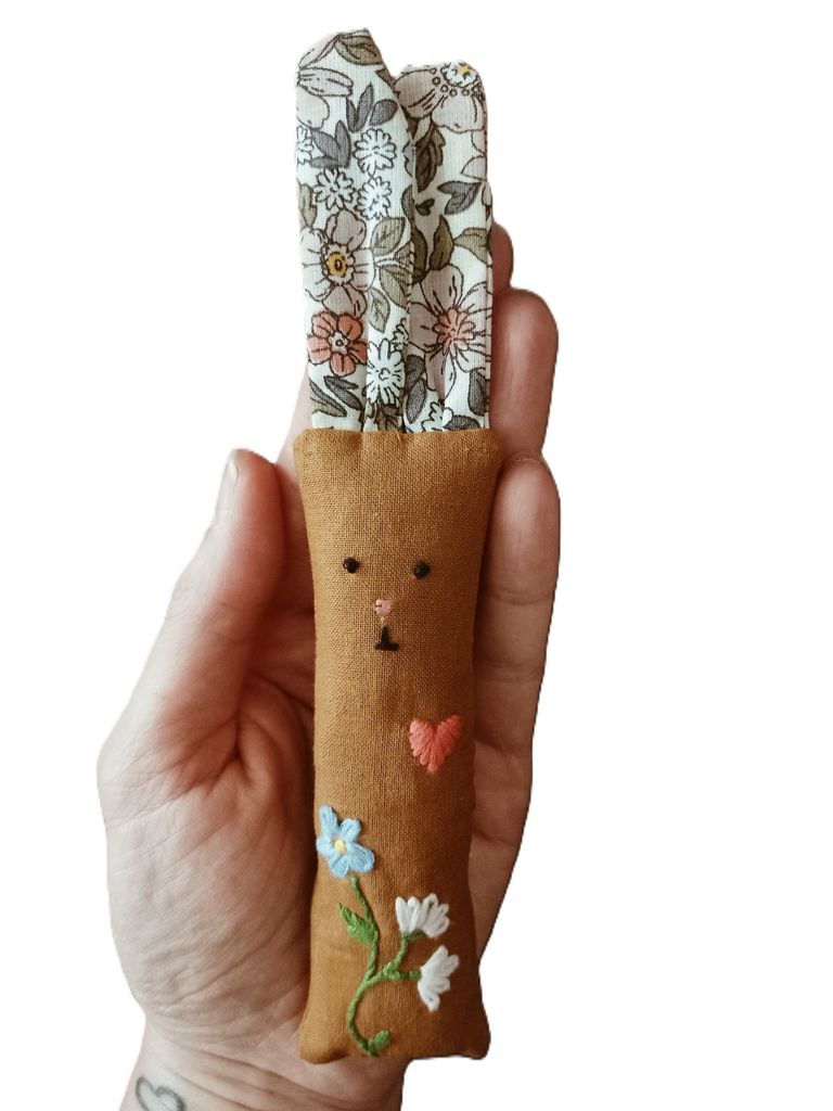 Environ 16/18 cm - Taille idéale pour être transportée, câlinée, sentie, pattounée. Fabriquée à la main en petite série.