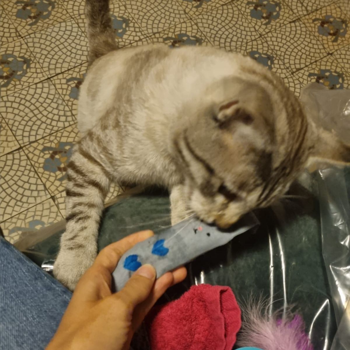 Blue (à gauche) et Oggy (à droite) avec Babette leur ronronnette respective.